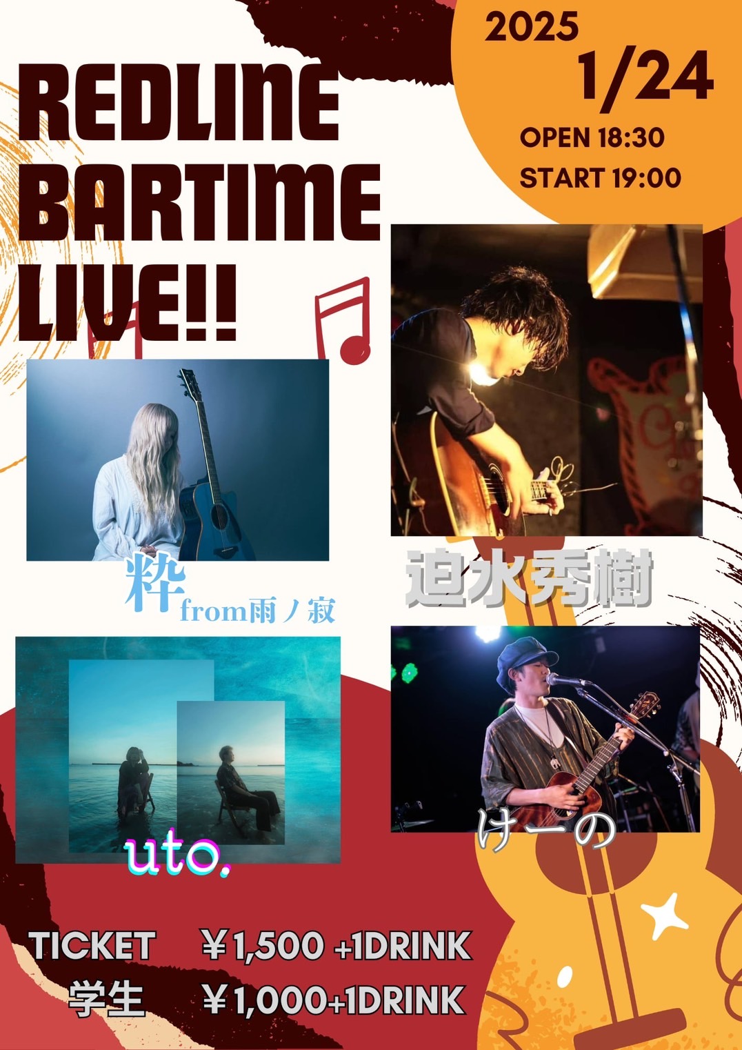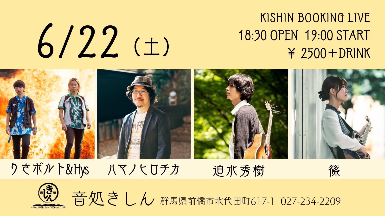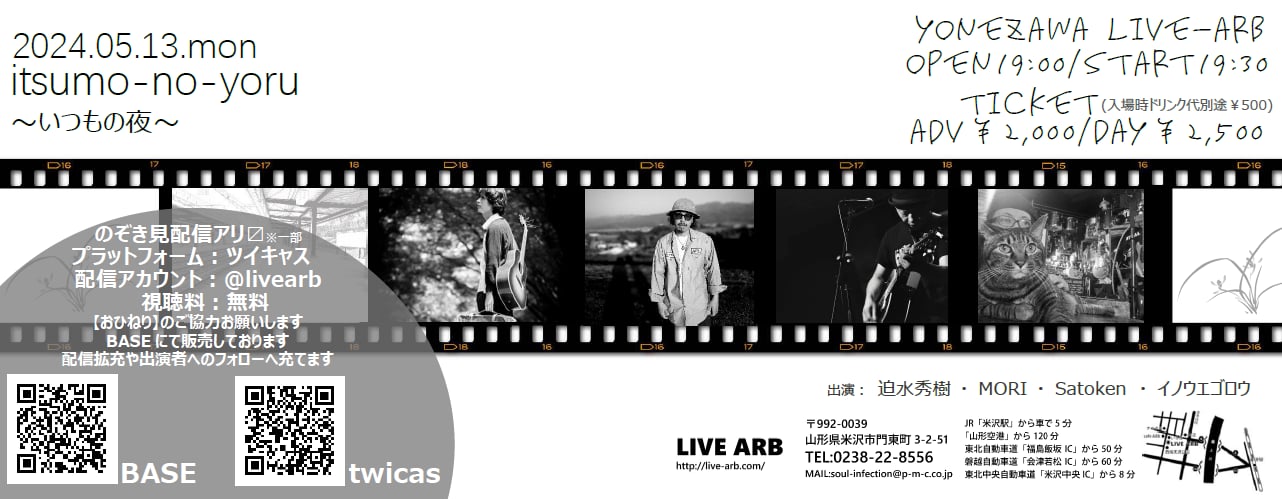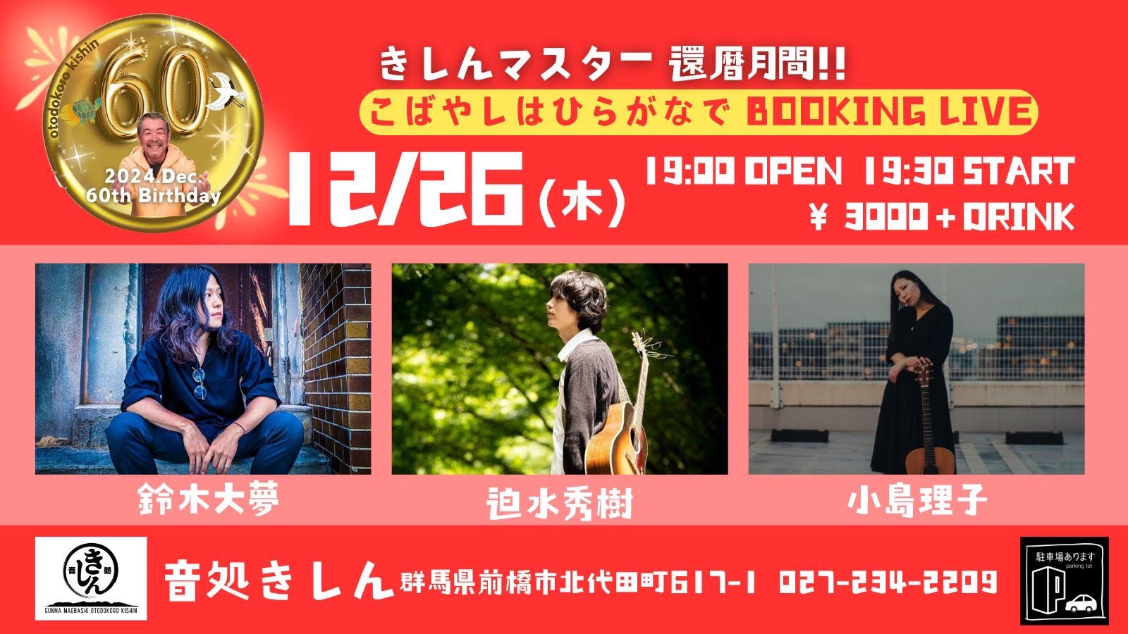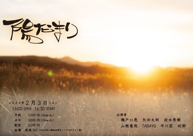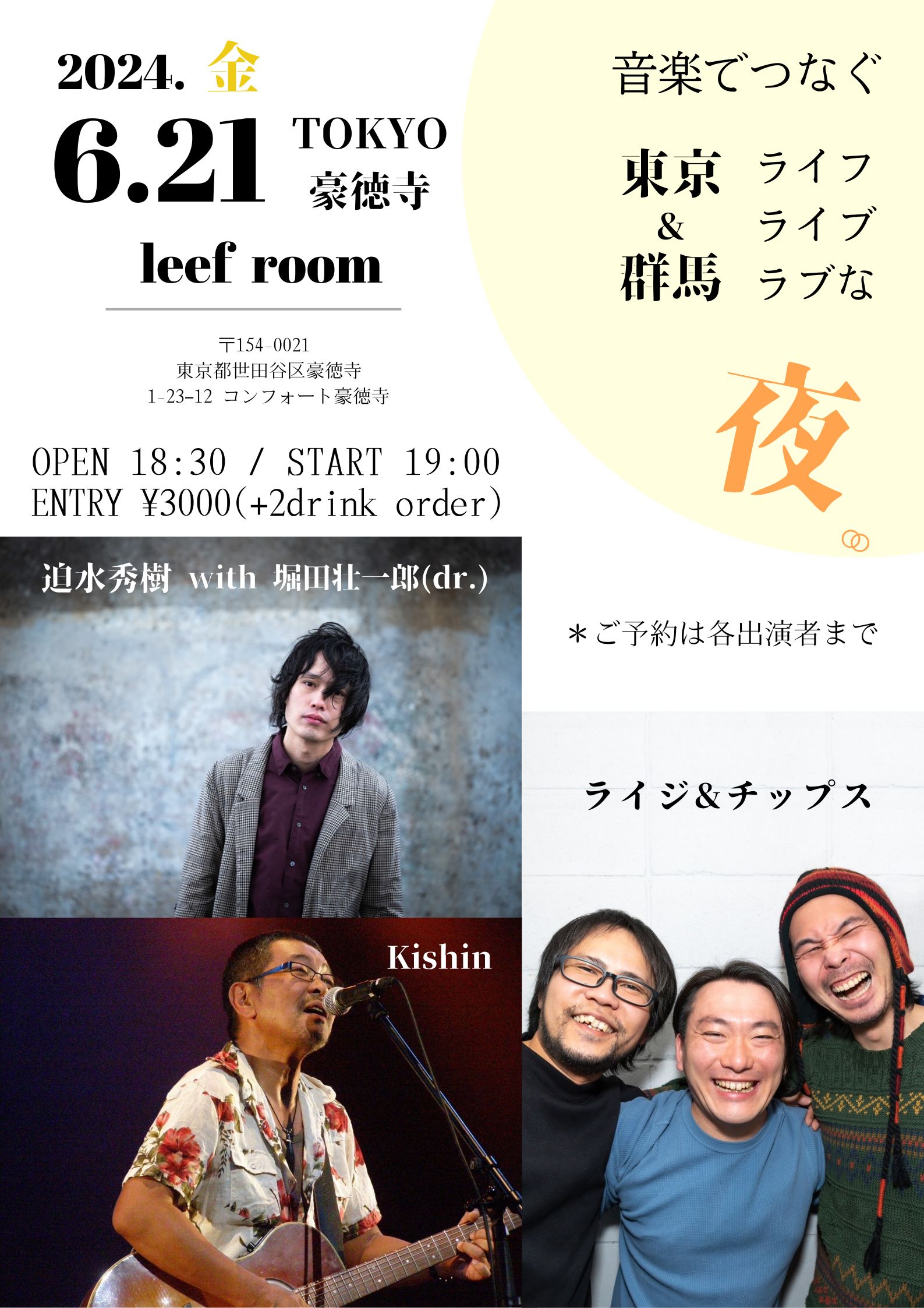【ライブのみ】予約 2500yen / 当日 3000yen(※1/24よりご予約受付開始)