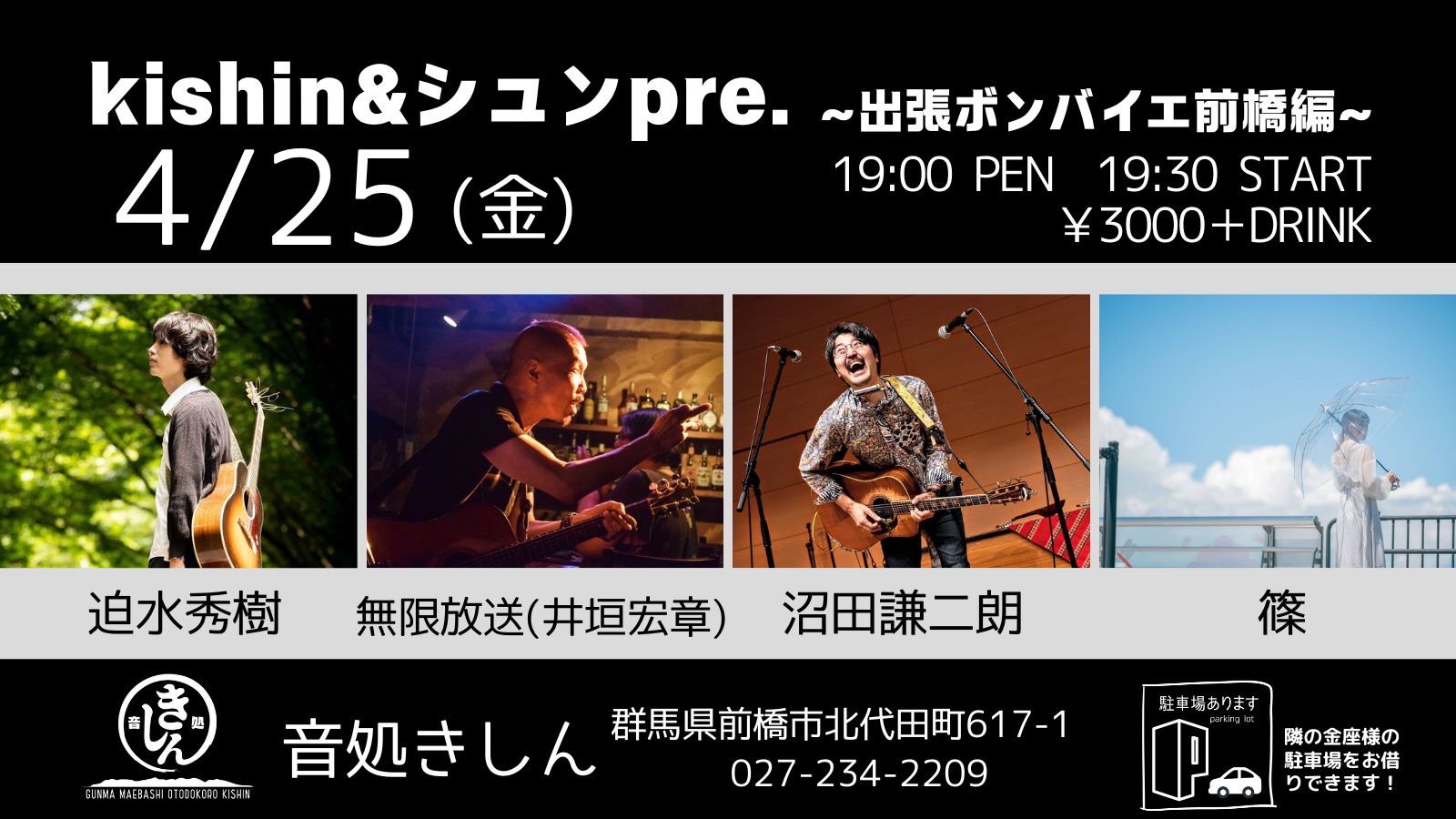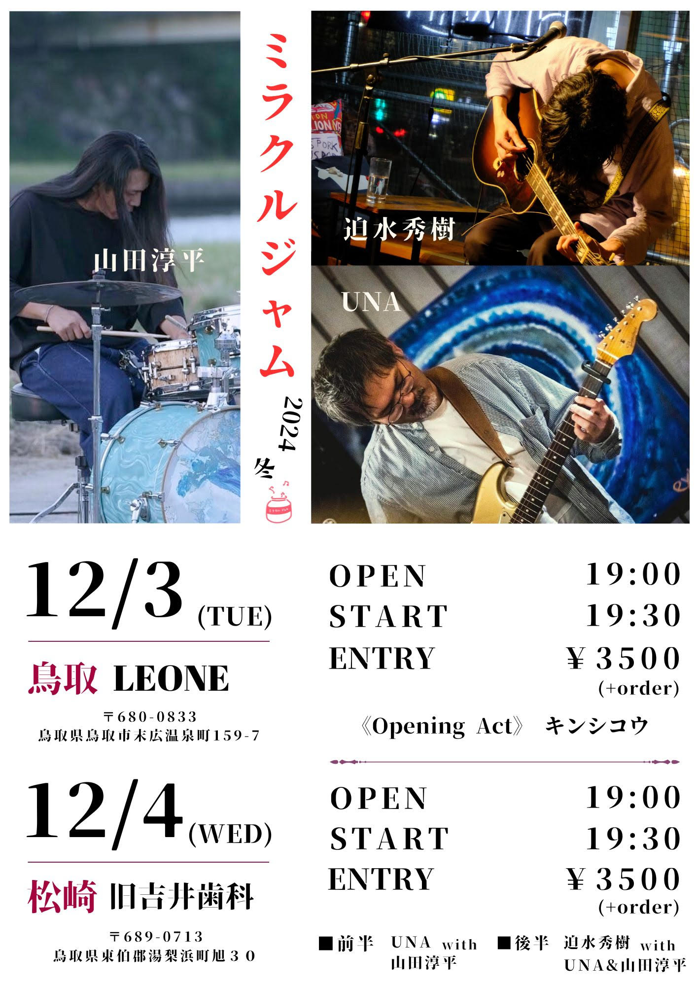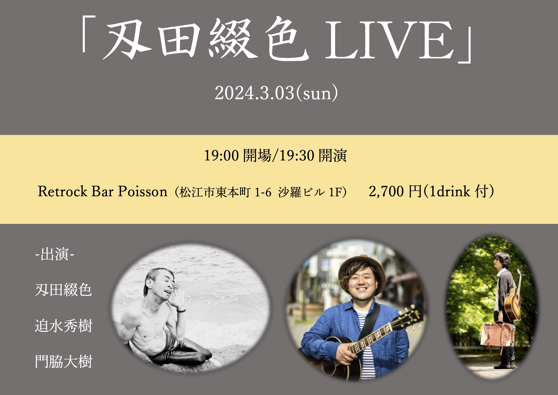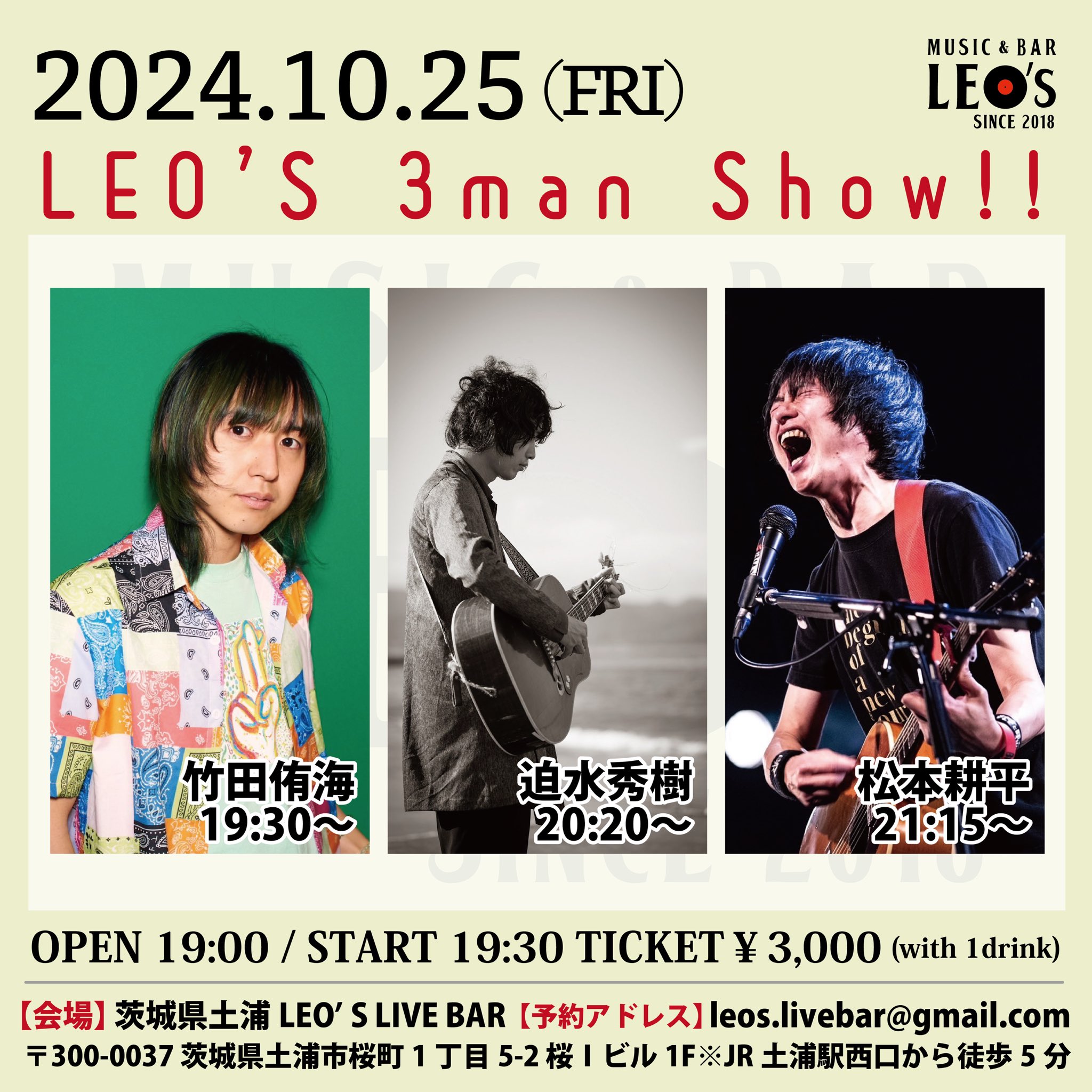 【ライブのみ】予約 2500yen / 当日 3000yen(※1/24よりご予約受付開始)