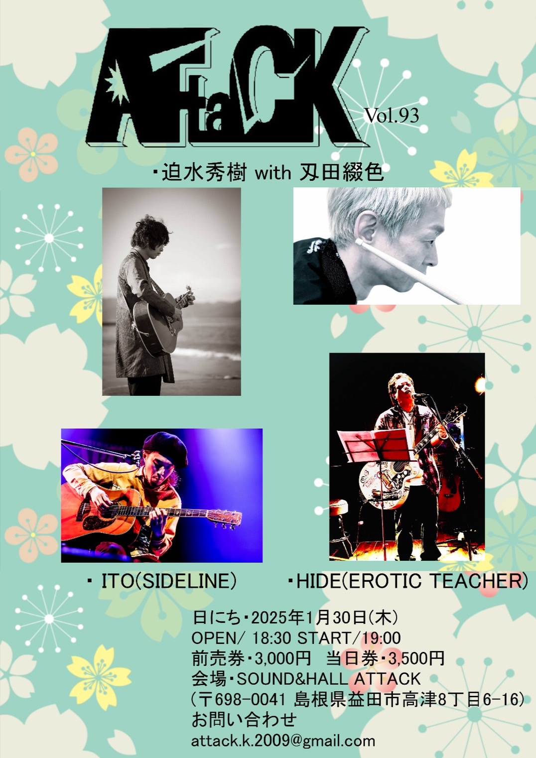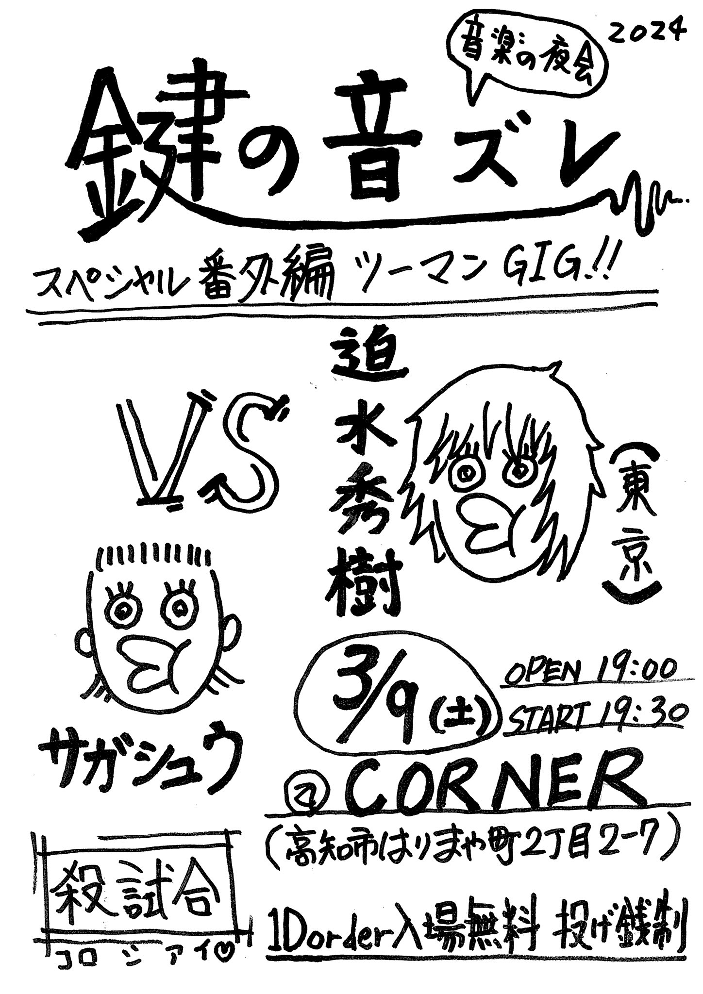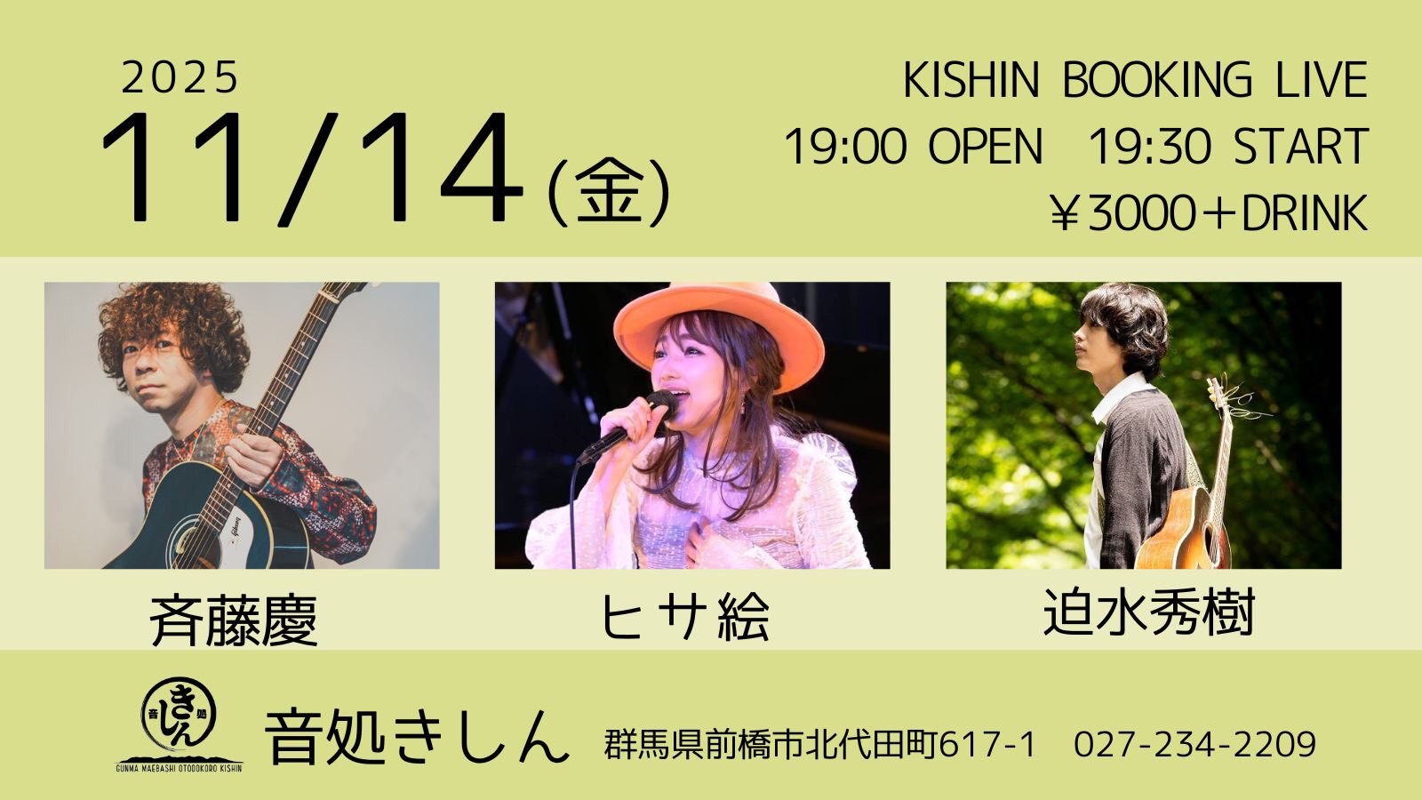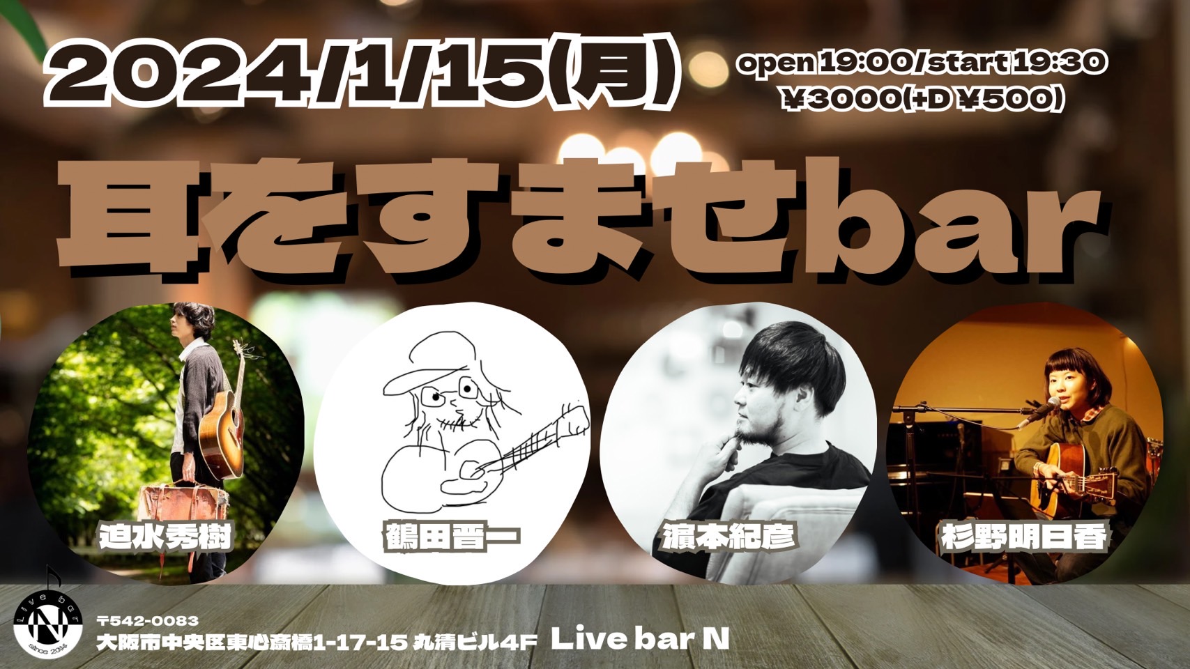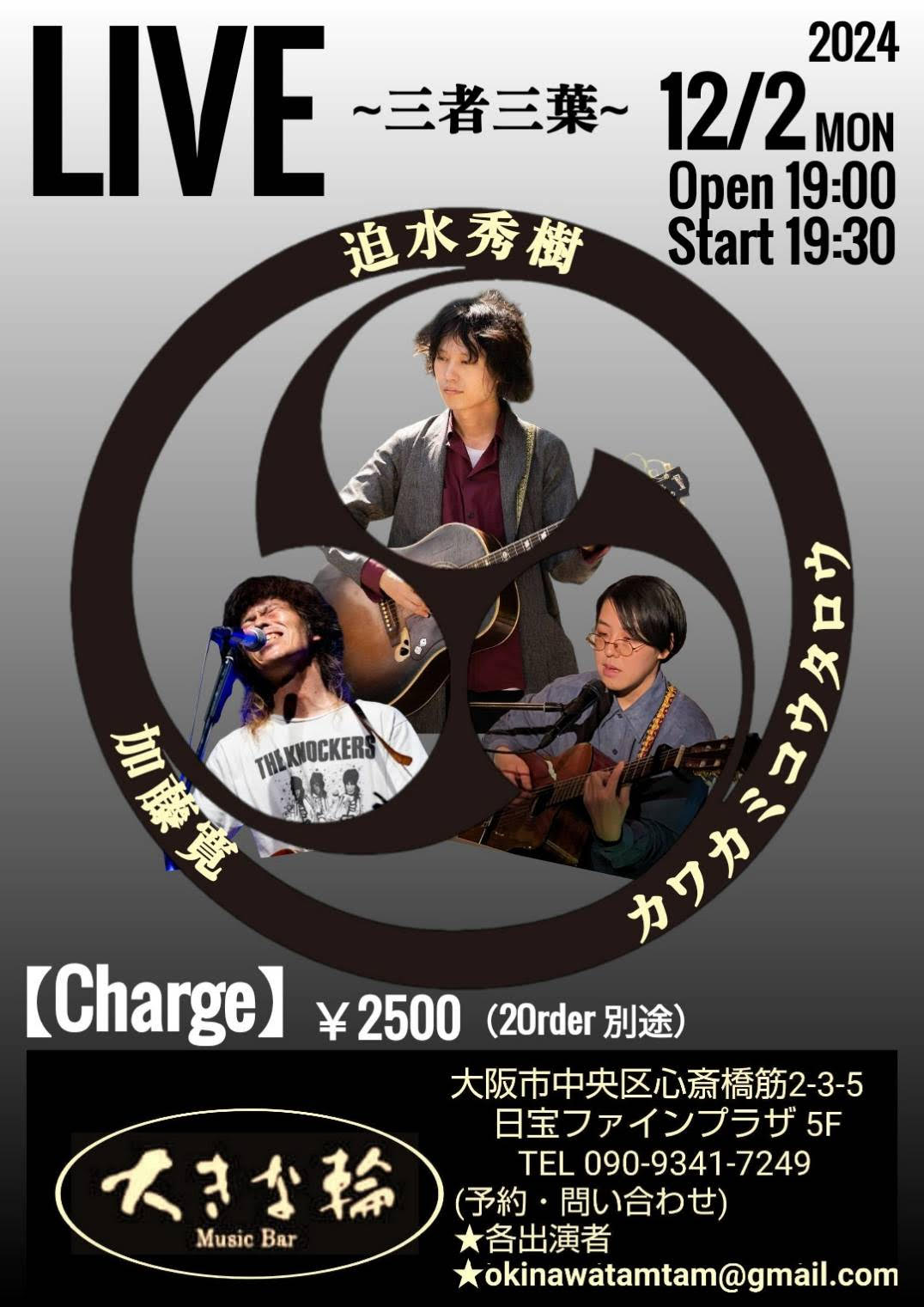 【ライブのみ】予約 2500yen / 当日 3000yen(※1/24よりご予約受付開始)