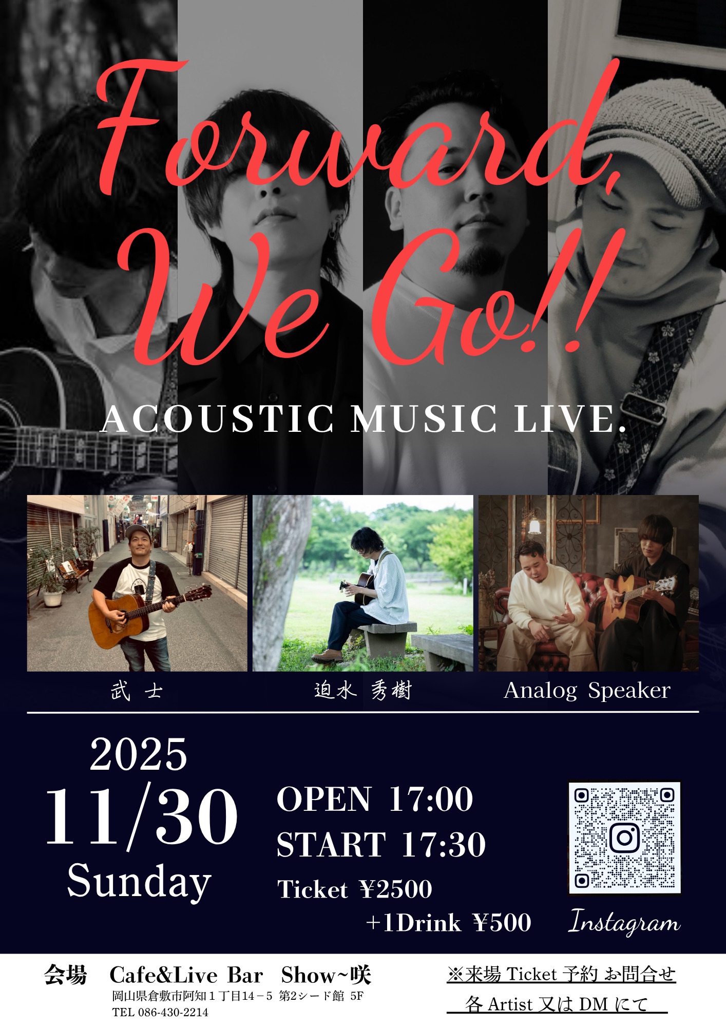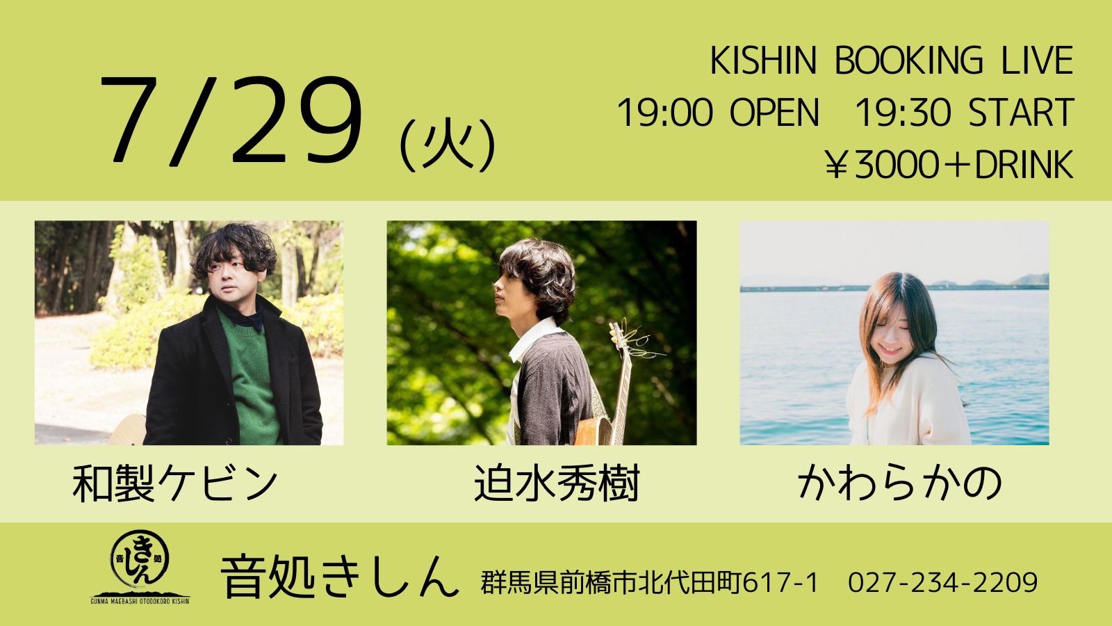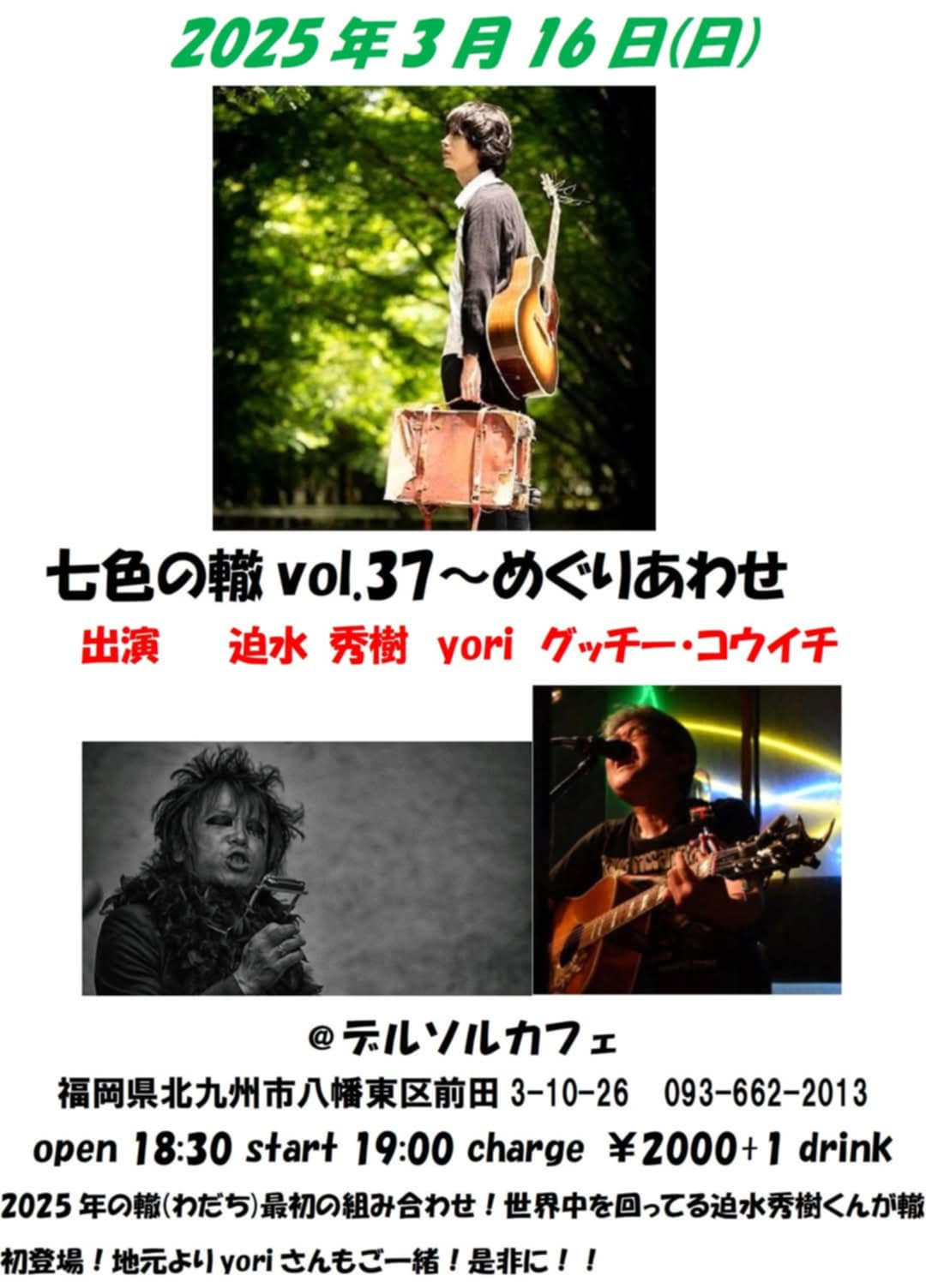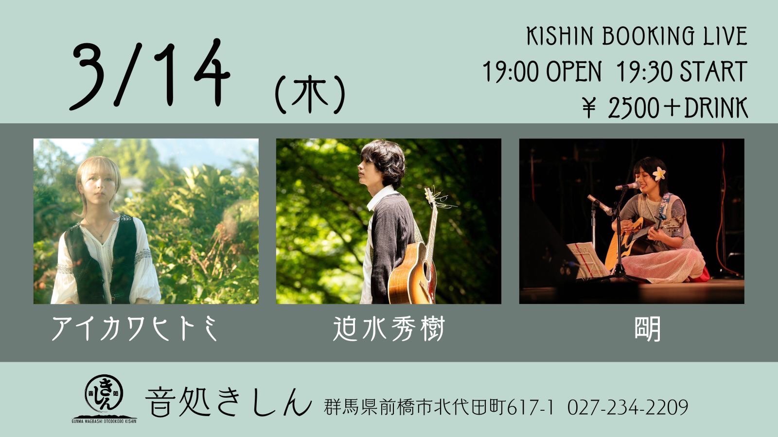 【ライブのみ】予約 2500yen / 当日 3000yen(※1/24よりご予約受付開始)