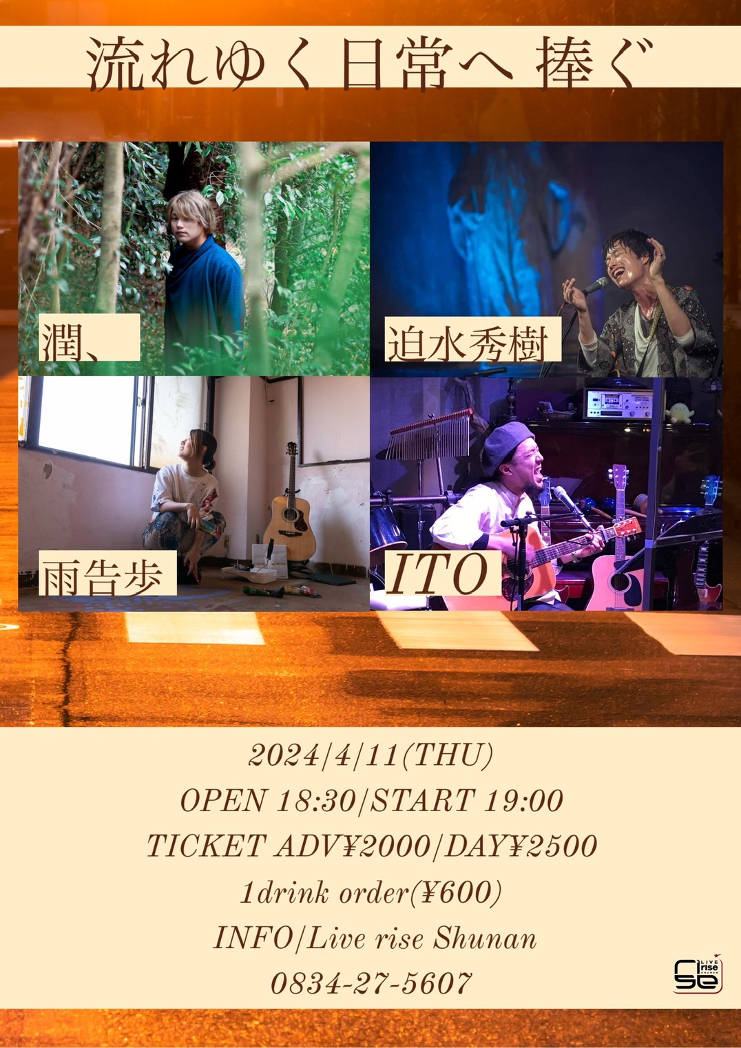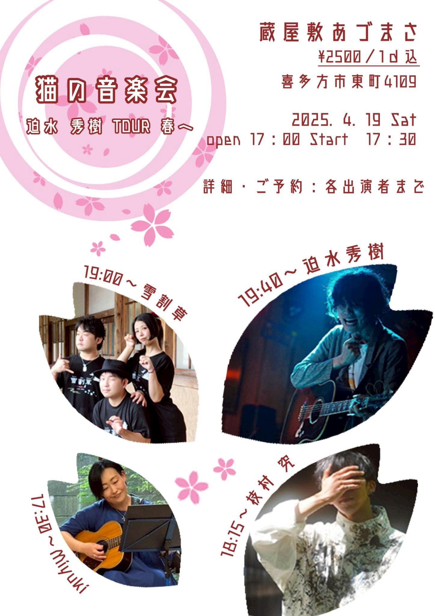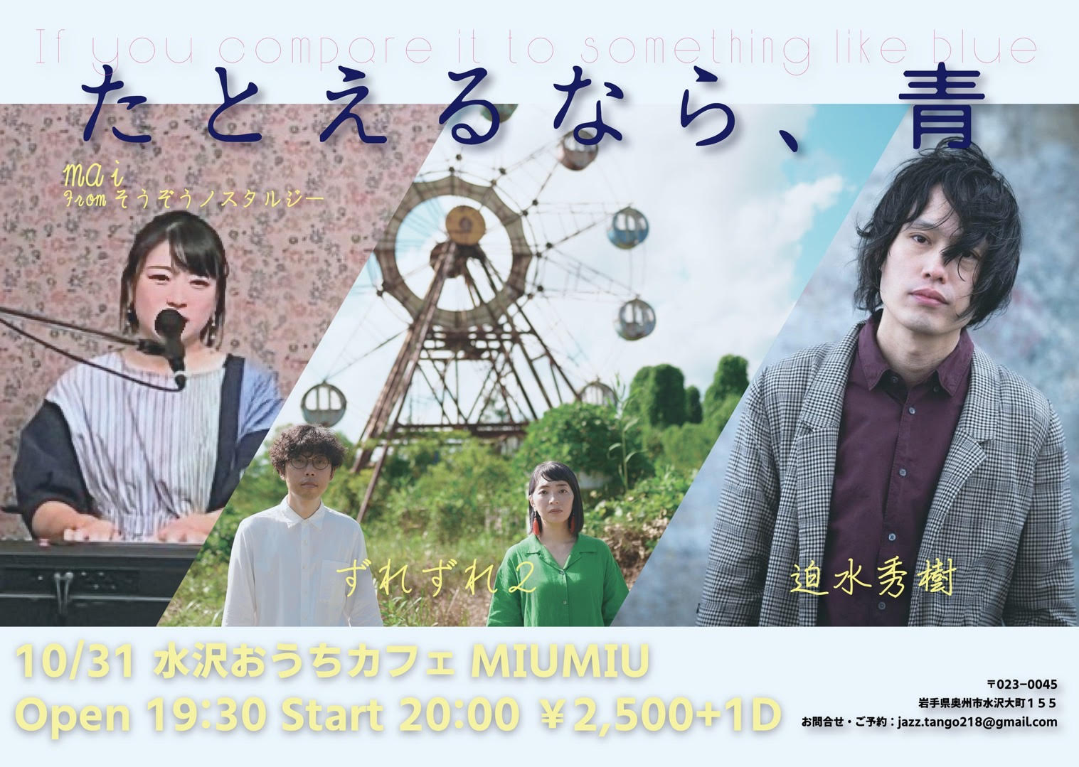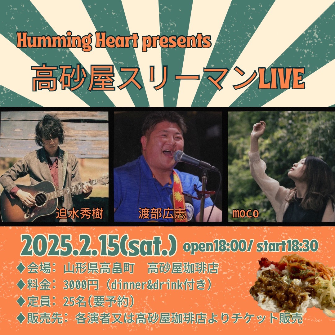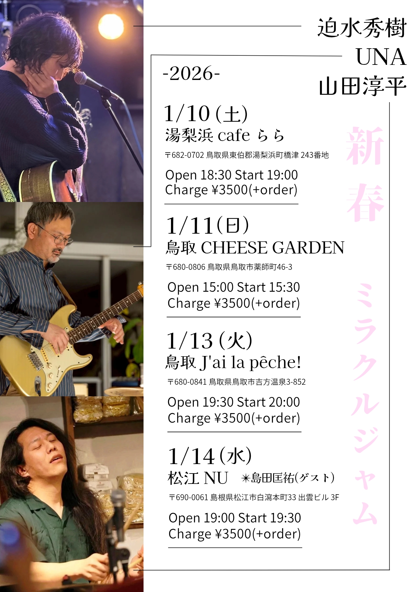 【ライブのみ】予約 2500yen / 当日 3000yen(※1/24よりご予約受付開始)