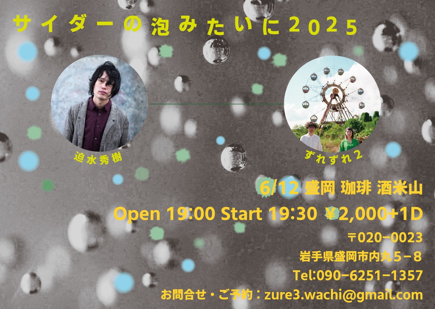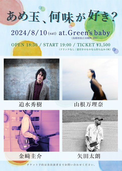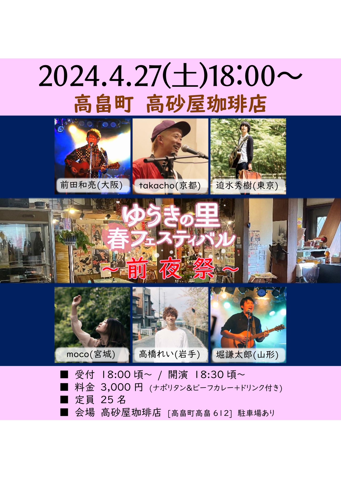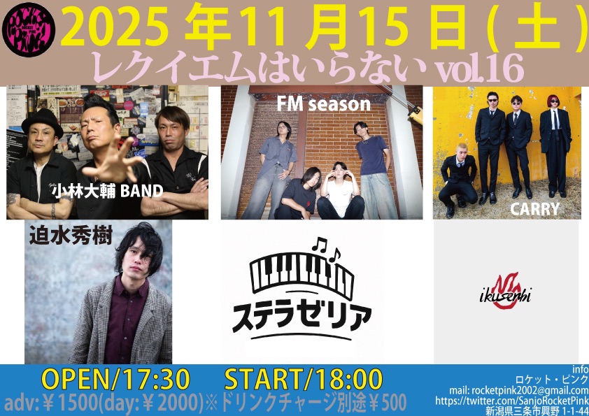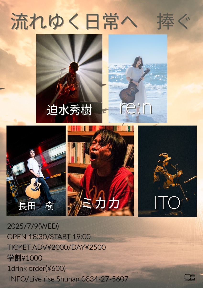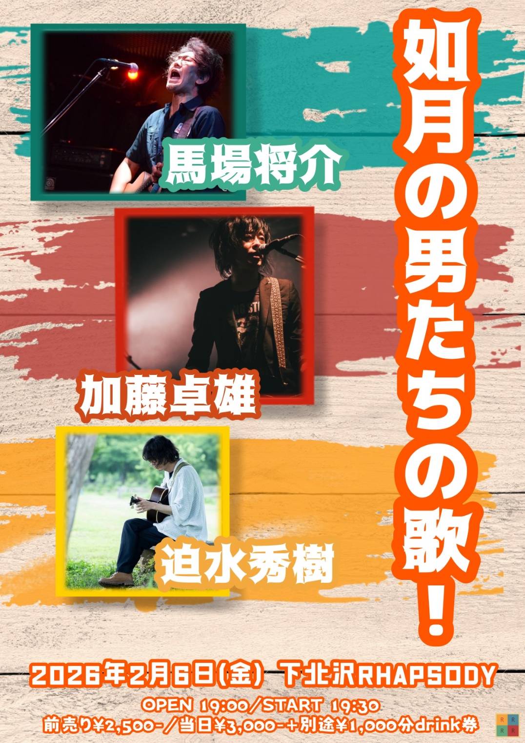 【ライブのみ】予約 2500yen / 当日 3000yen(※1/24よりご予約受付開始)