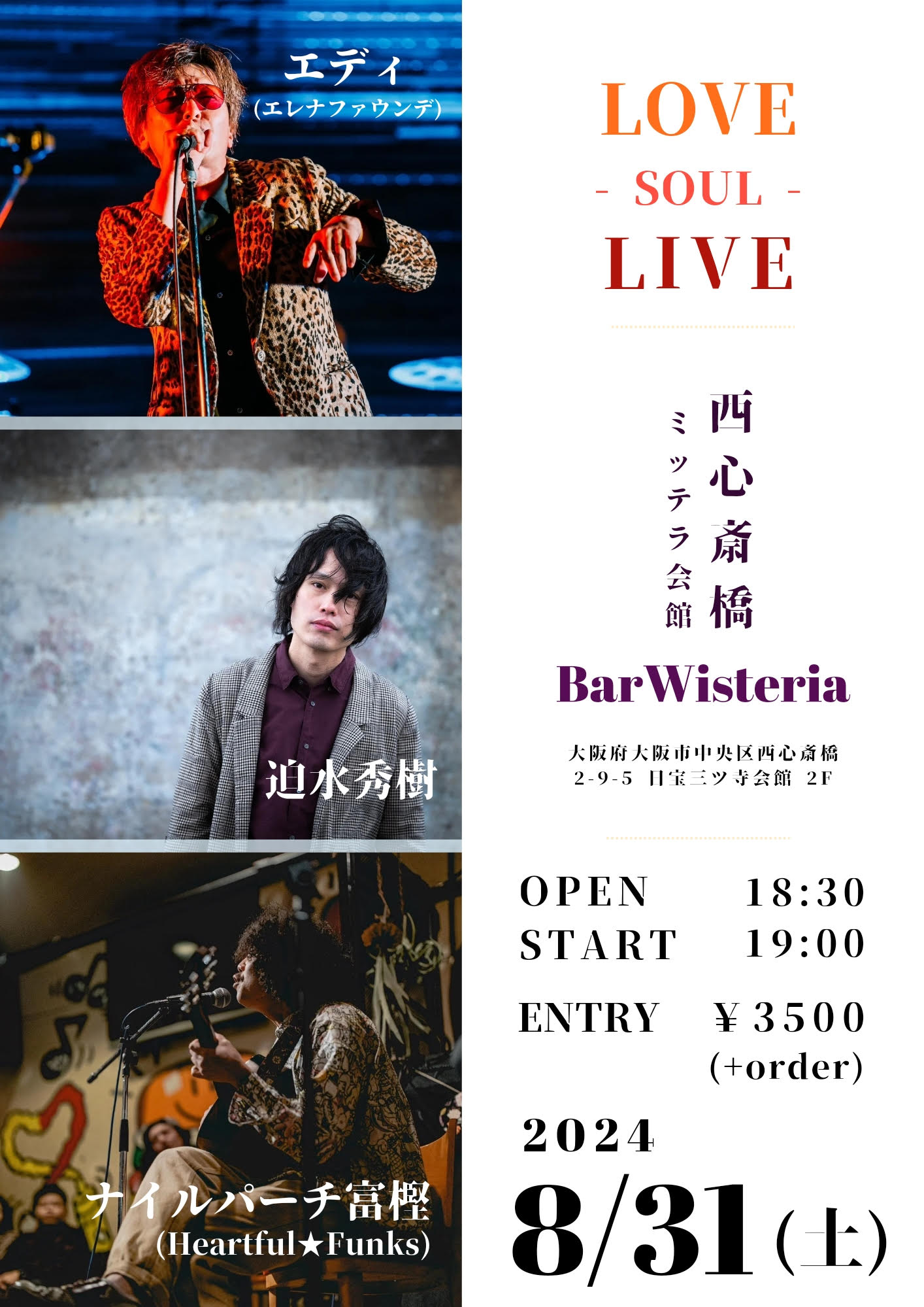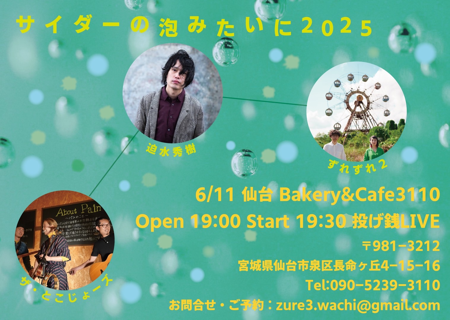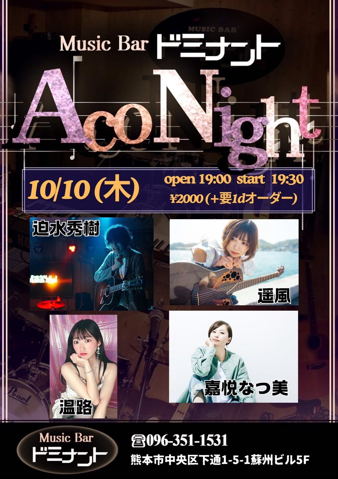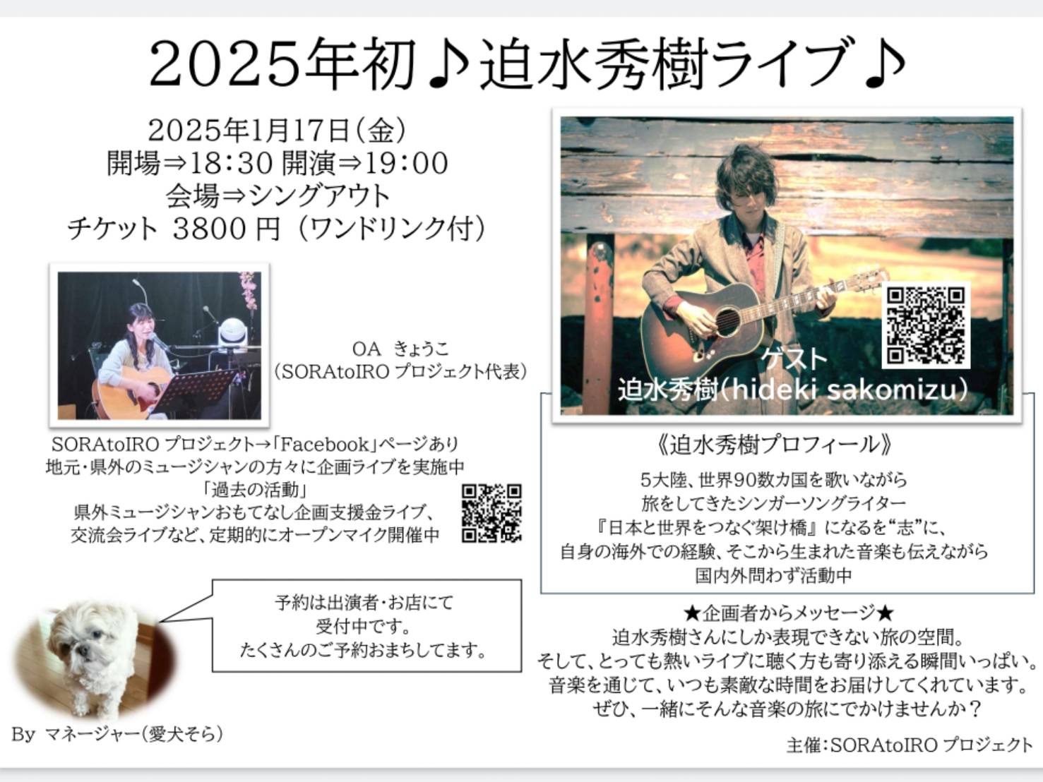【ライブのみ】予約 2500yen / 当日 3000yen(※1/24よりご予約受付開始)