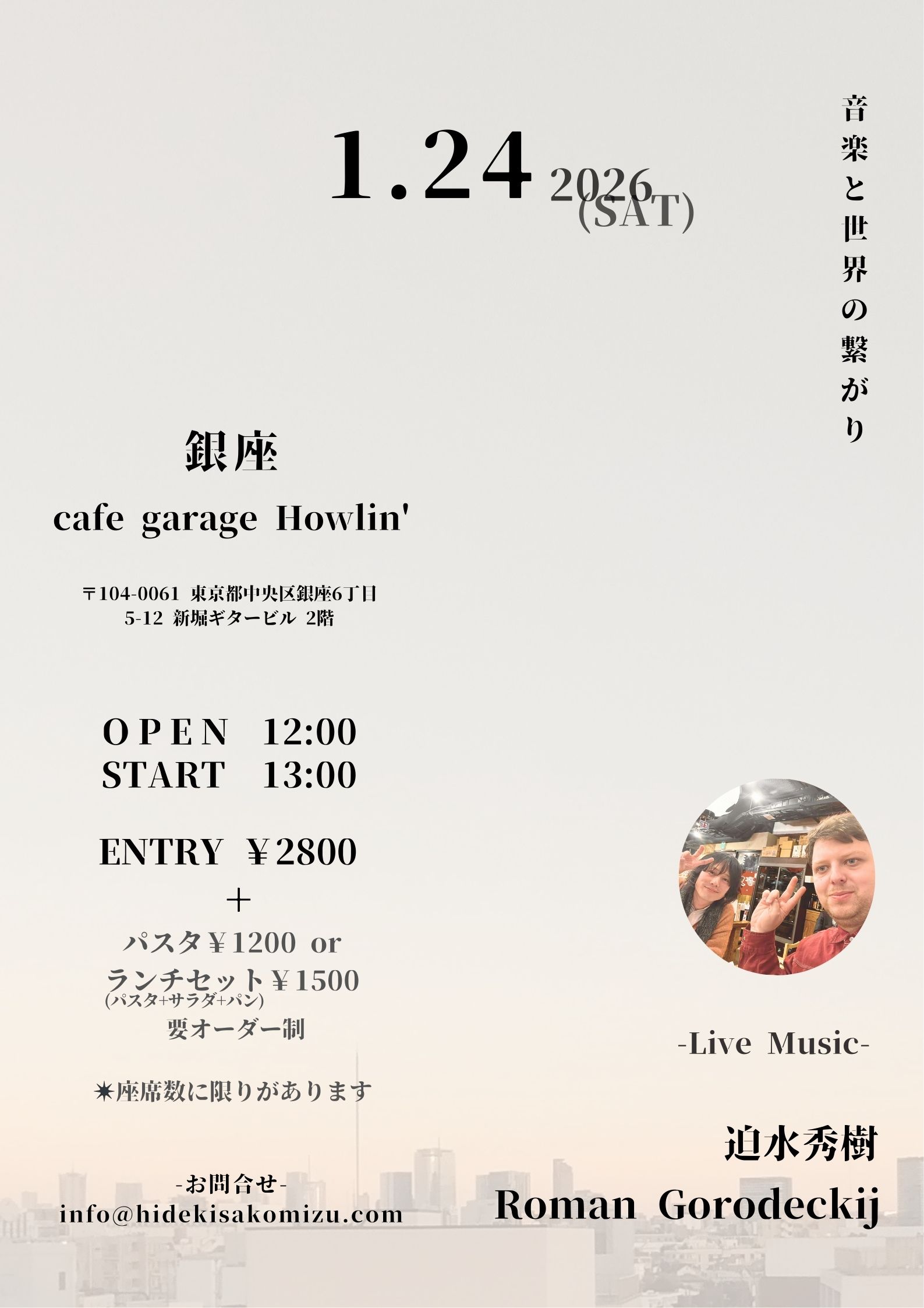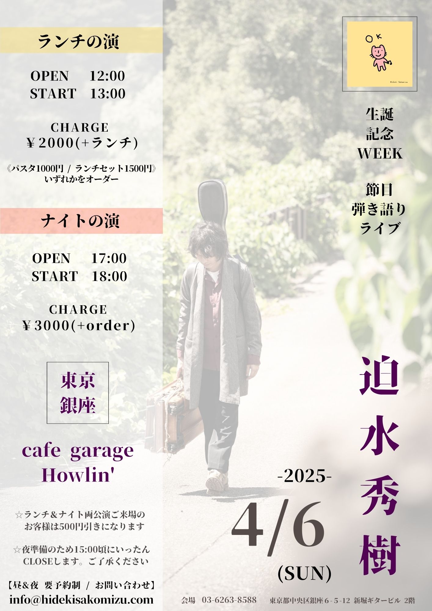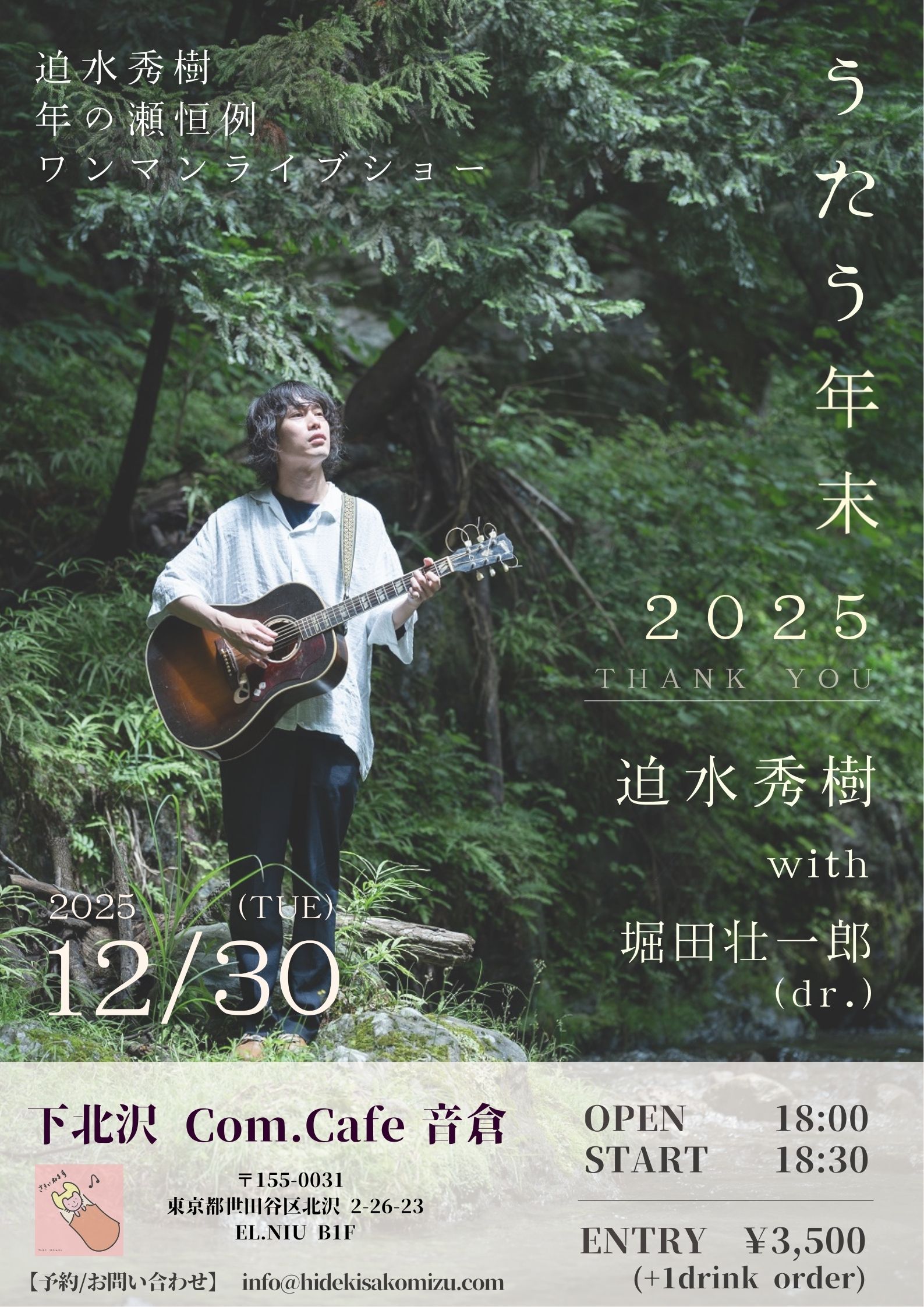 ライブ前日までに、メールをinfo@hidekisakomizu.comまで送信してください。