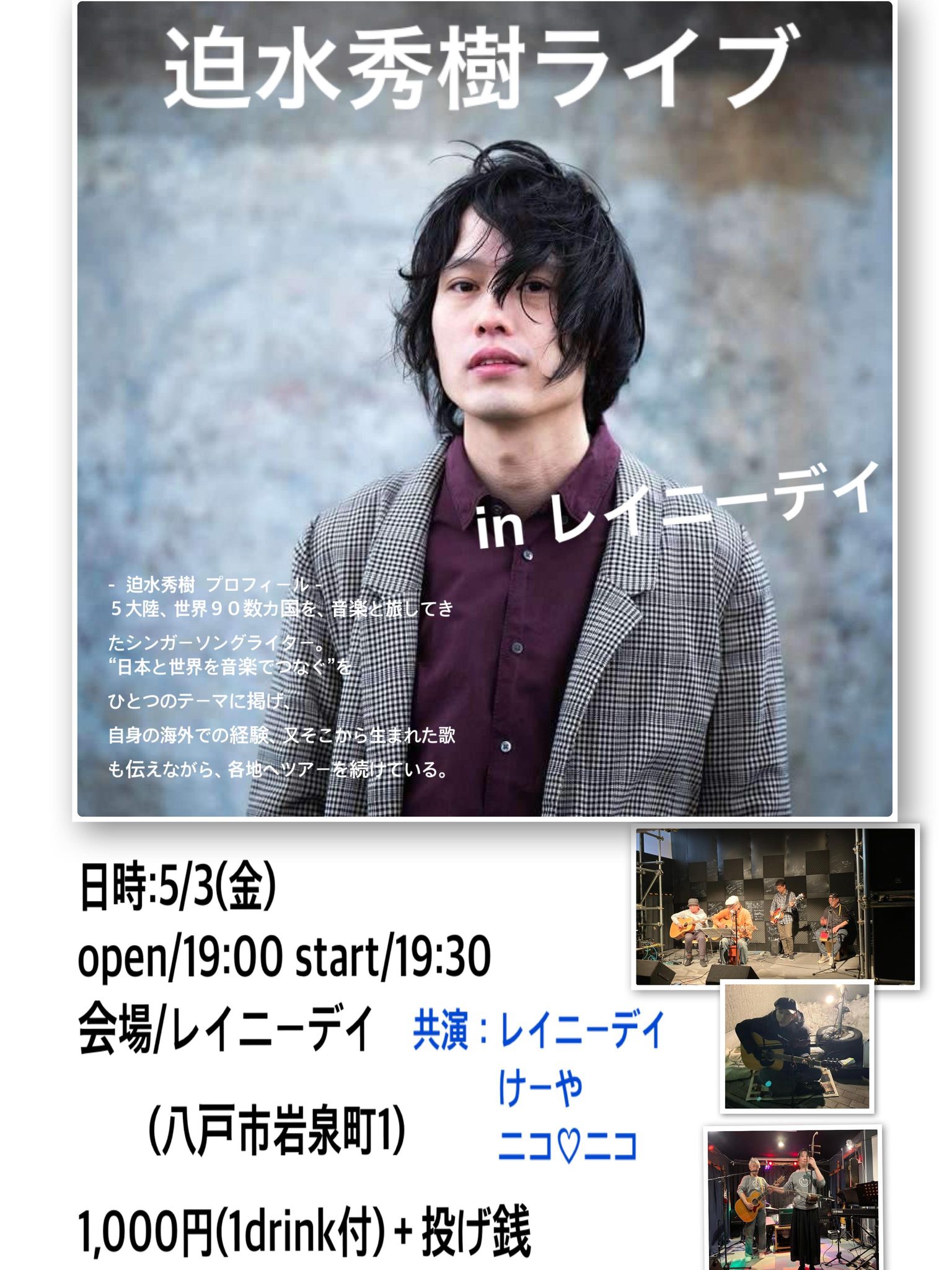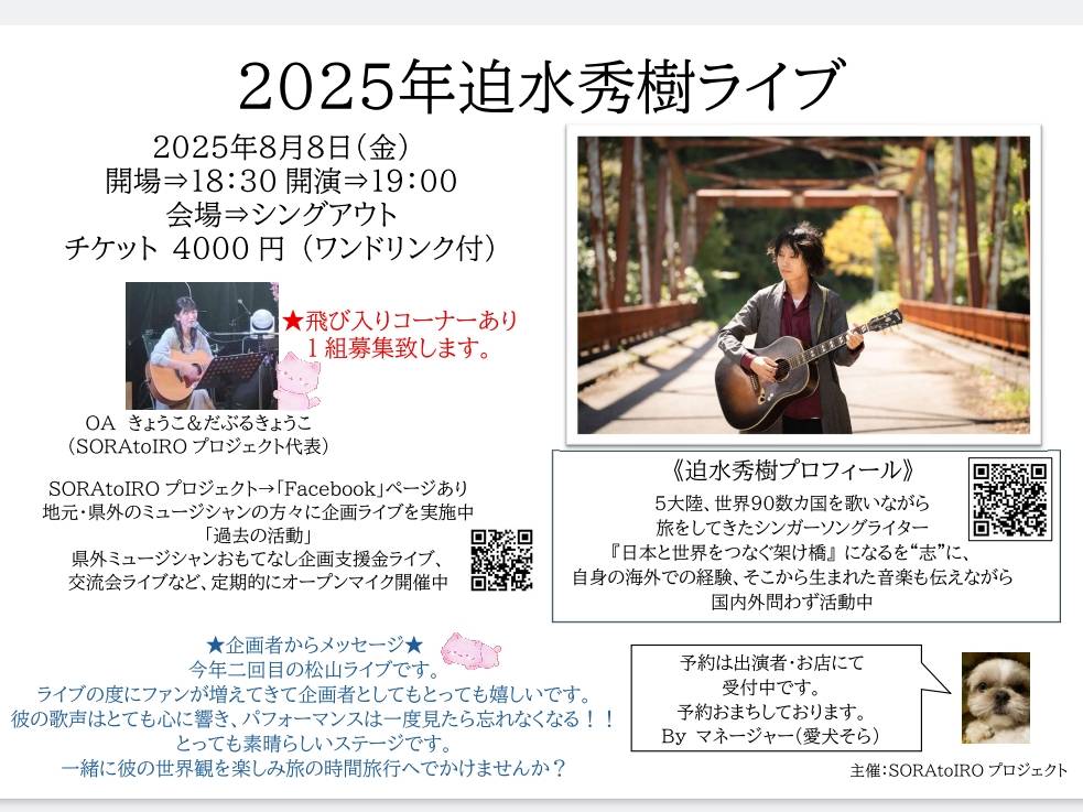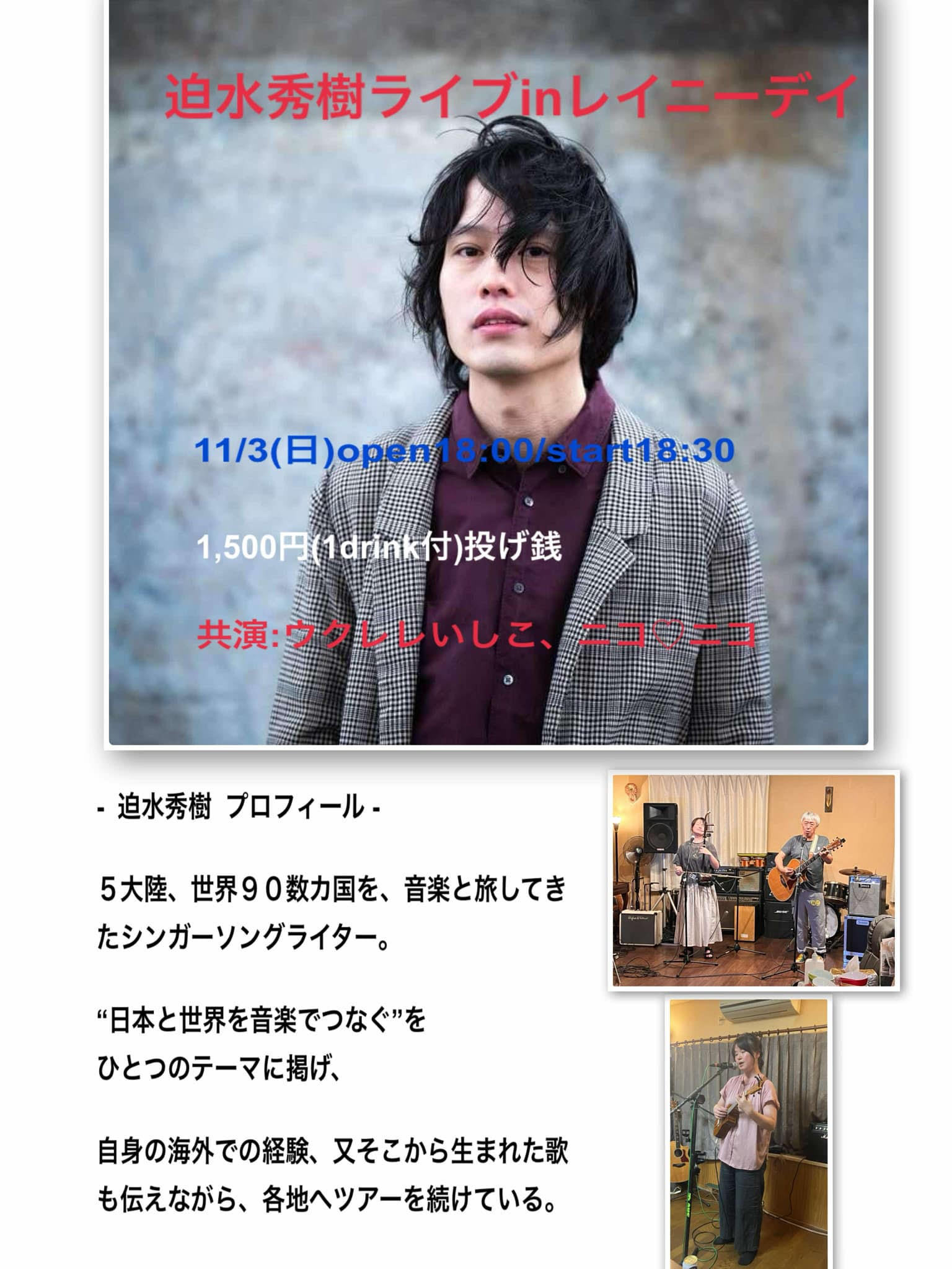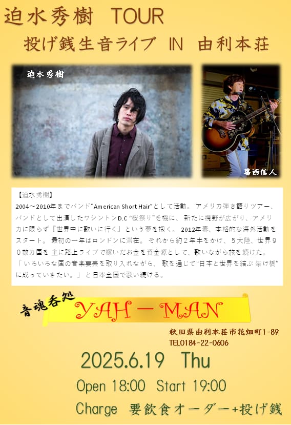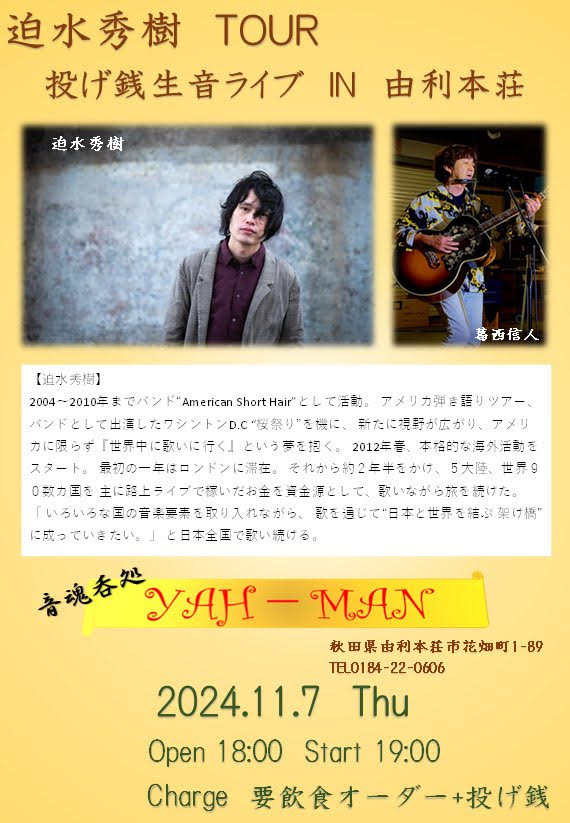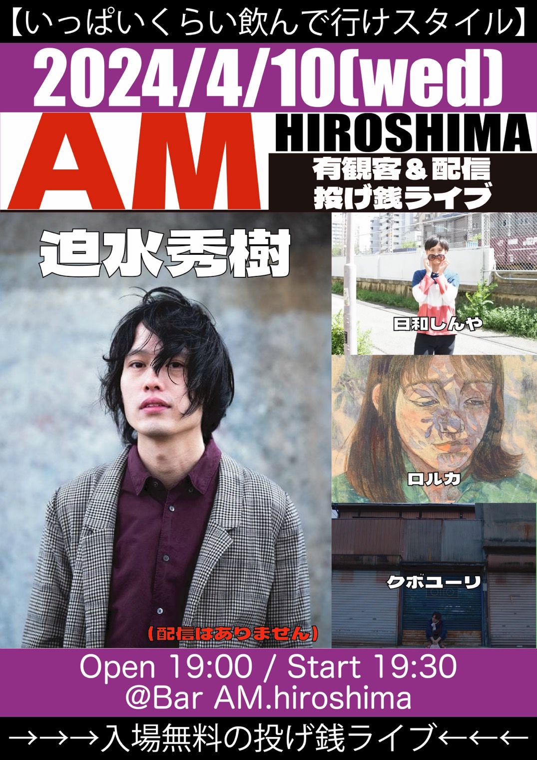 (迫水秀樹のライブは19:15〜50)