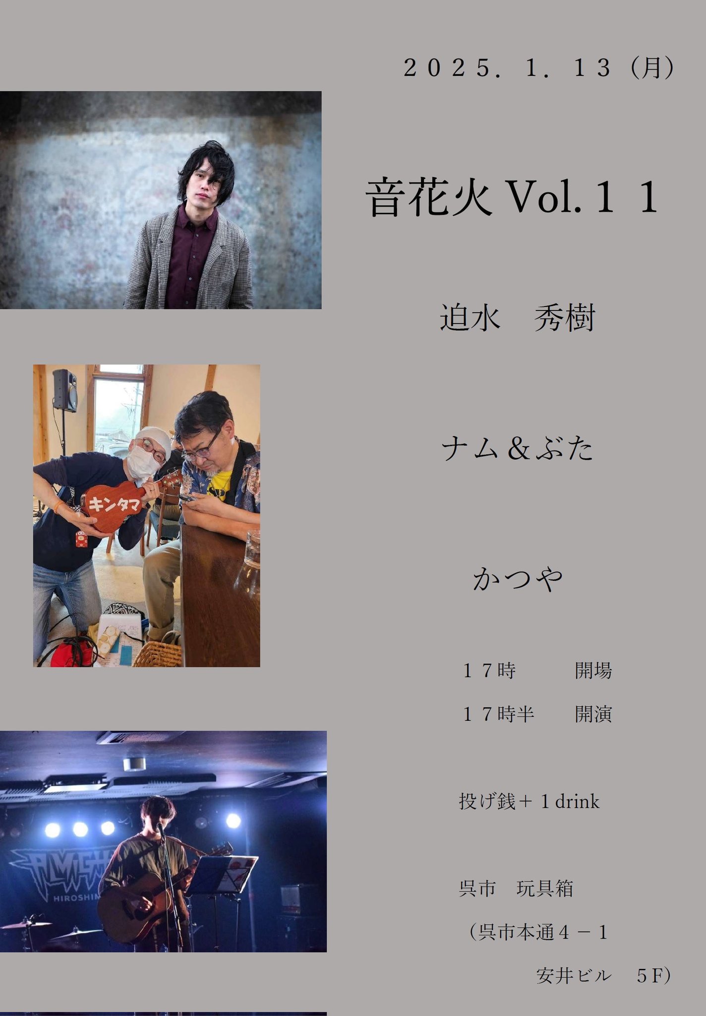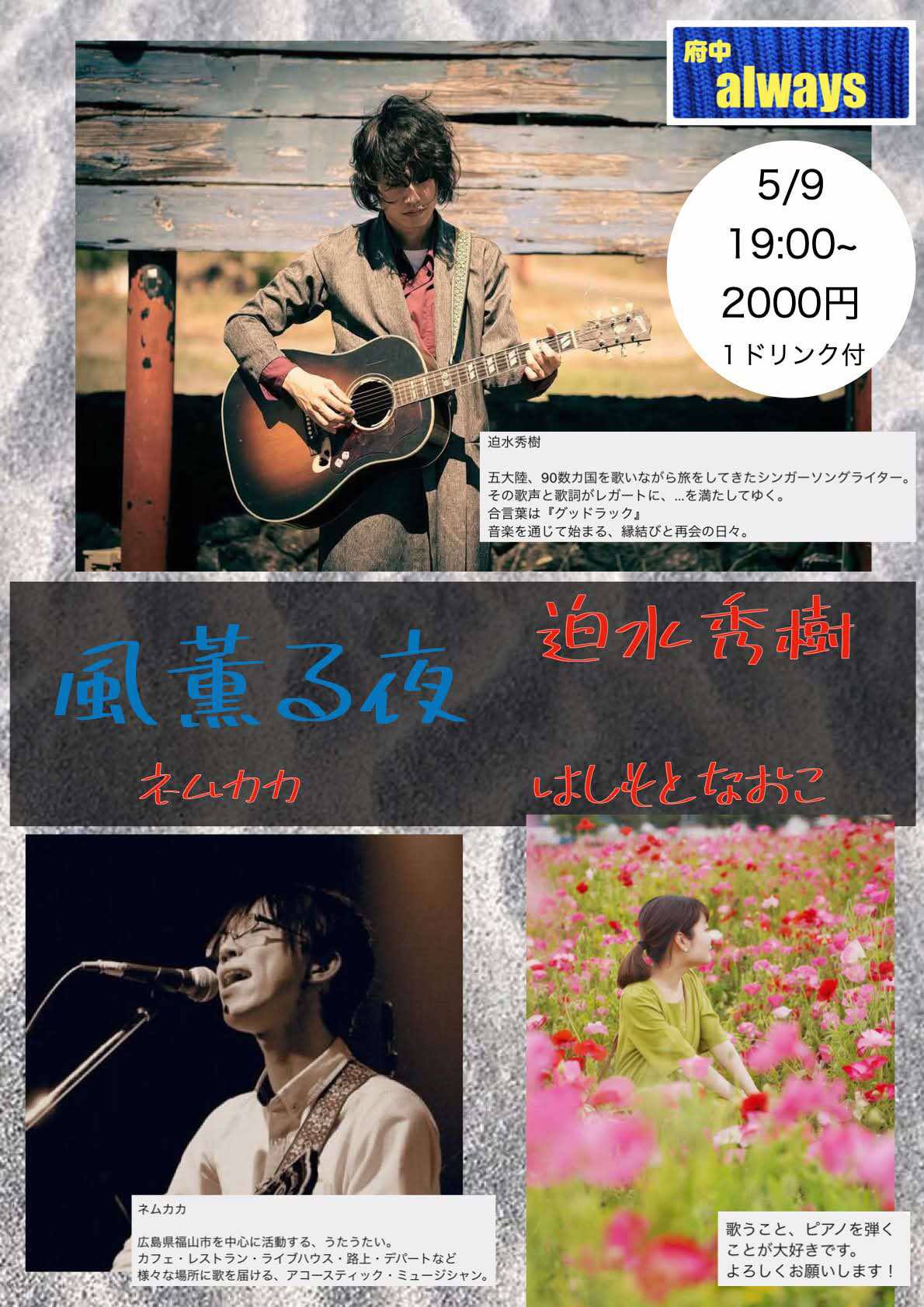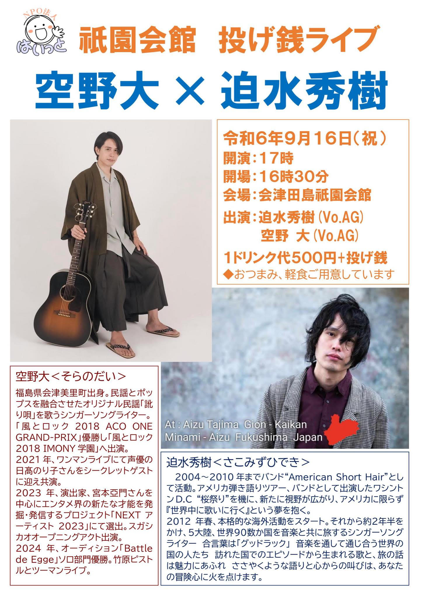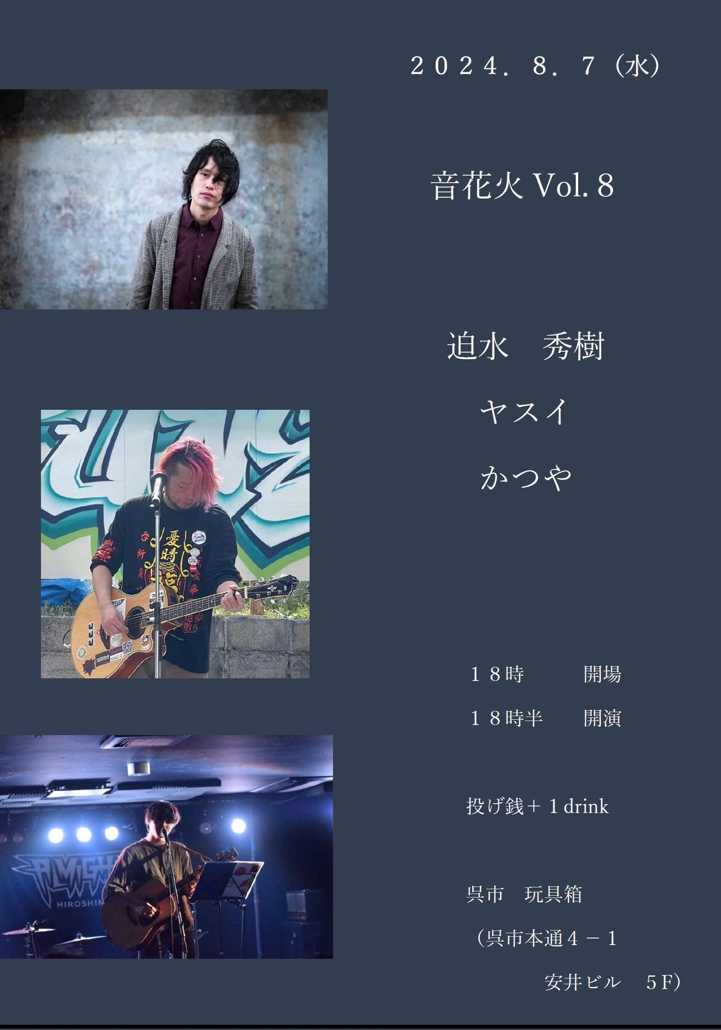 (迫水秀樹のライブは19:15〜50)