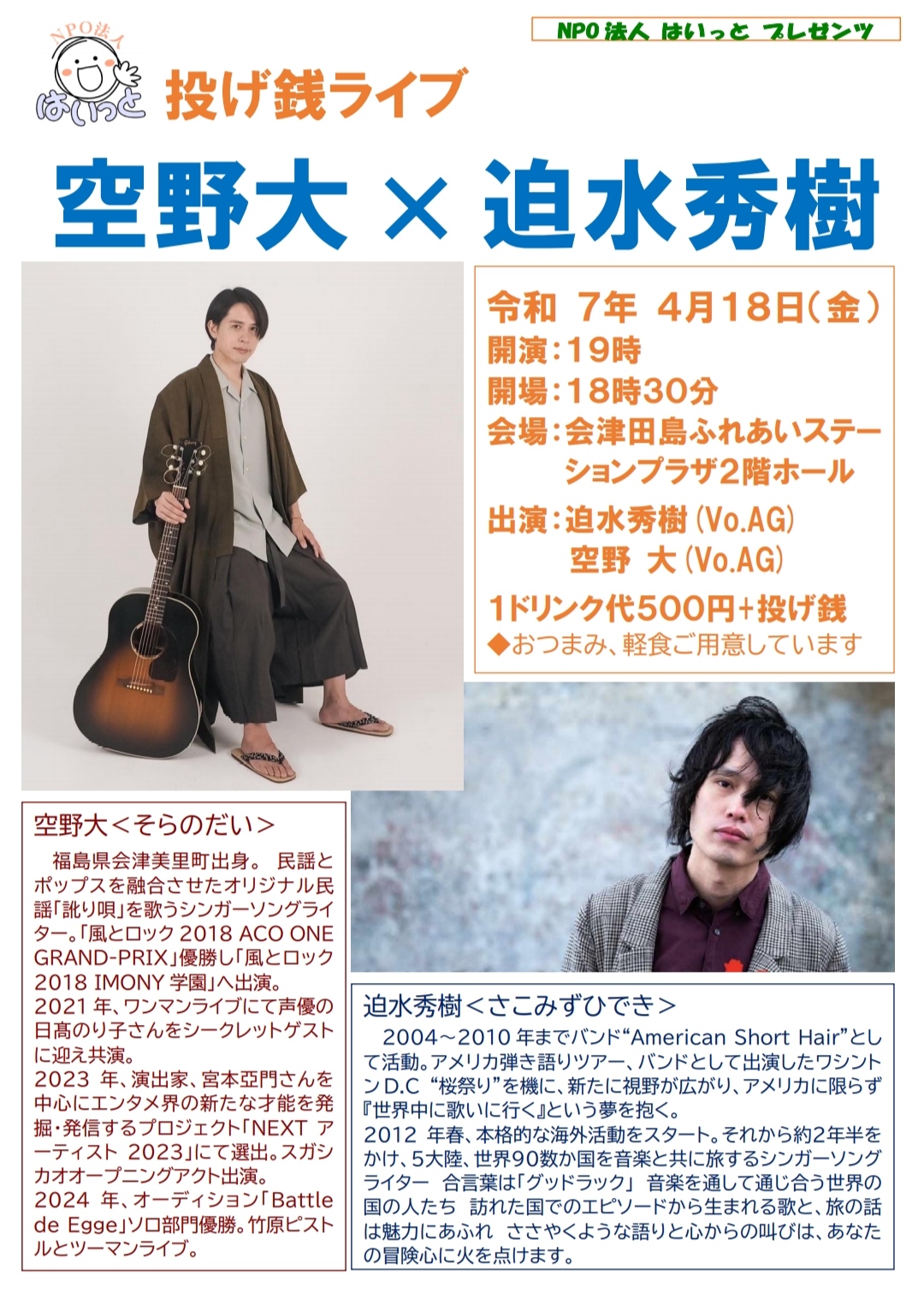 CHARGE 1000yen(+1drink order) & 投げ銭